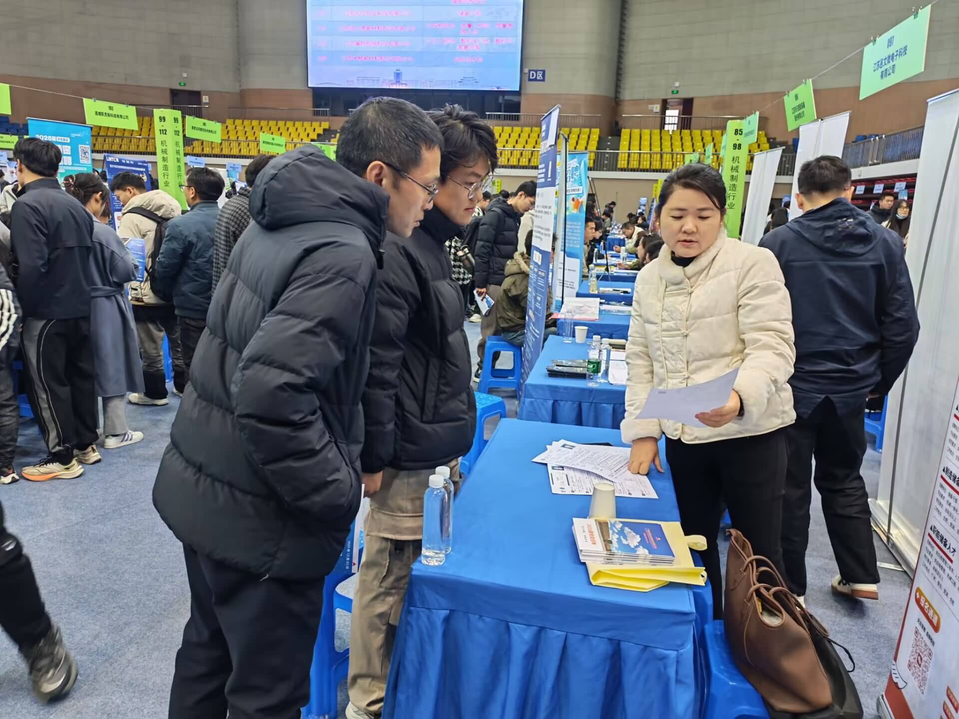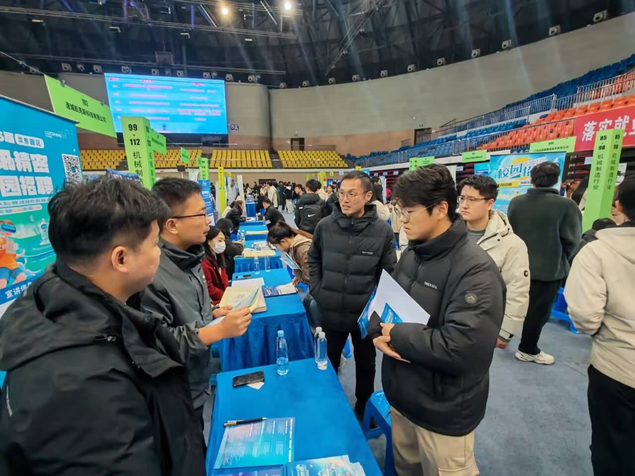 12月23日下午,公司党委副书记兼副经理董小平、辅导员王文元一行走进2026届毕业生“研后专场”校园招聘会,走访海信(浙江)空调有限公司、江苏毅昌科技有限公司、立讯精密工业股份有限公司、江苏中天伯乐达变压器有限公司、南京达风数控技术有限公司、杭叉集团股份有限公司等6家用人单位,与用人单位进行了深入的交流。