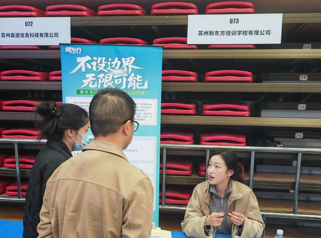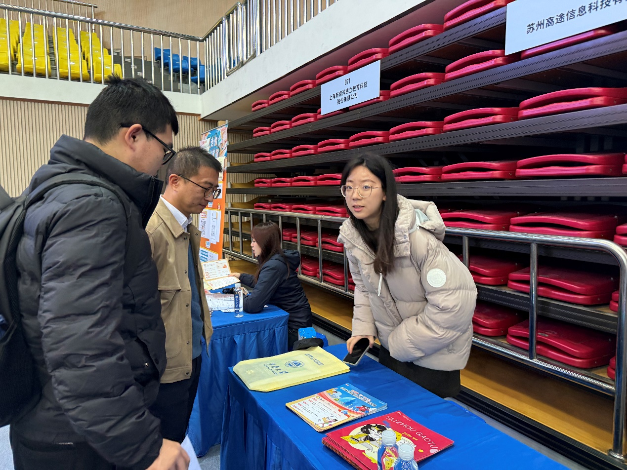 12月23日,williamhill英国官网副经理刘朗、本科生辅导员李丹和毕业生代表来到集团“研后专场”招聘会一线,走访上海新南洋昂立教育科技有限公司、苏州新东方培训公司有限公司、无锡市星火教育培训有限公司、苏州高途信息科技有限公司等教育类企业、卓品智能科技无锡股份有限公司、孩子王儿童用品股份有限公司等6家重点用人单位,开展访企拓岗专项行动。