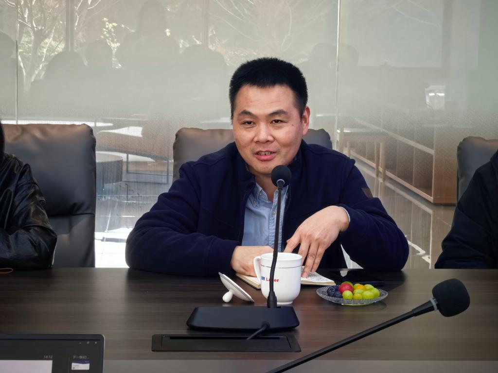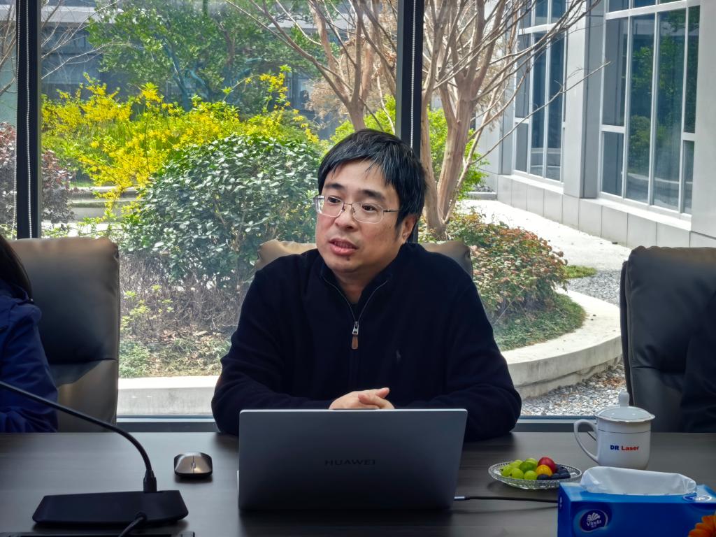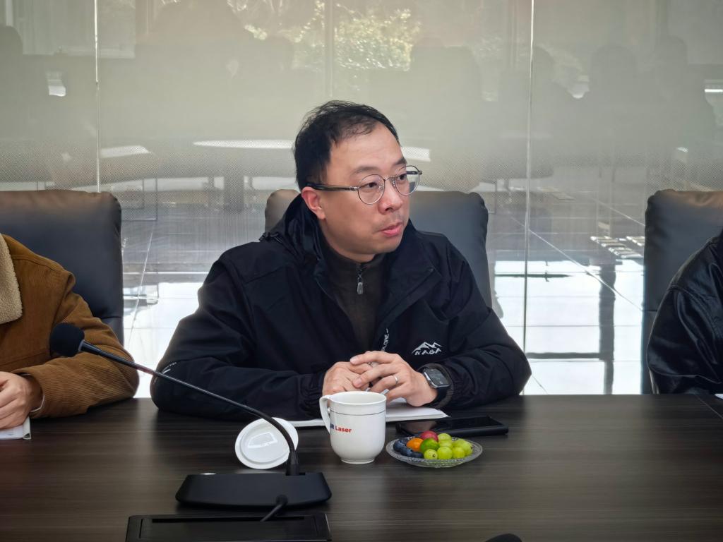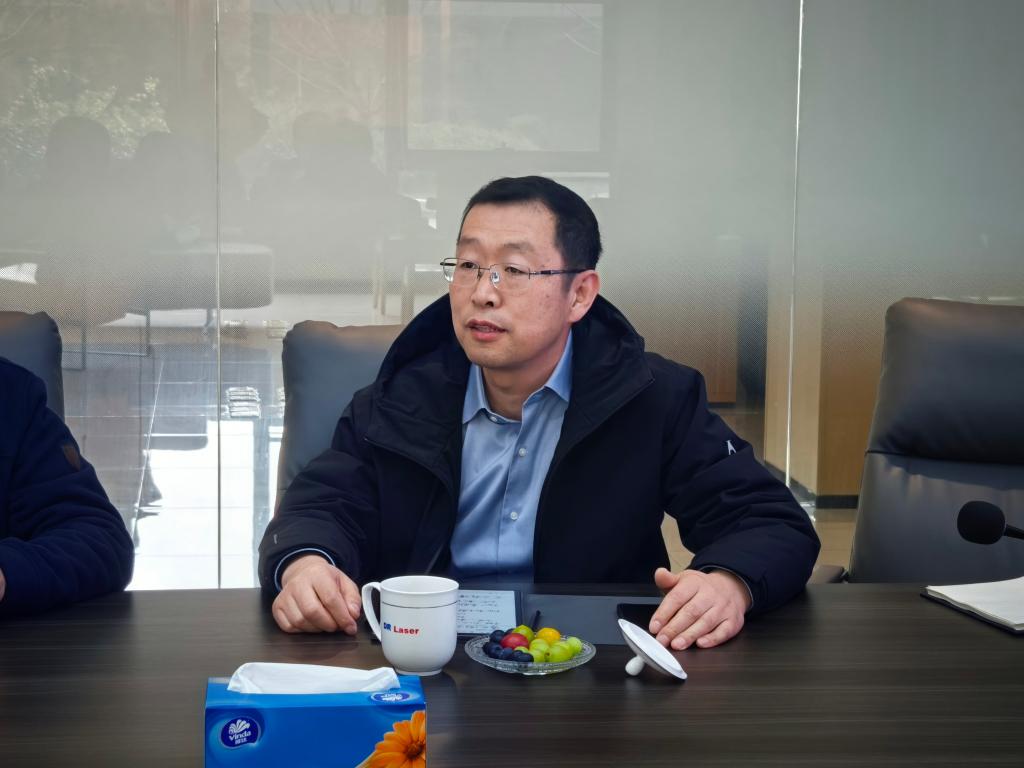 随后,公司领导与企业相关负责人进行座谈交流,双方就深层次合作展开深入探讨。朱凡首先对公司业务及研发方向进行了详细介绍。该公司目前在全球拥有约1500名员工,其中研发人员占比超过三分之一,研发投入持续保持高位。在稳固光伏领域技术领先地位的同时,公司正积极拓展半导体和显示领域的“第二曲线”,并在碳化硅切割、玻璃通孔、激光退火等前沿技术上取得突破。他表示,随着公司向高精尖领域深入发展,遇到了诸多需要理论支撑的“硬骨头”难题,迫切需要与本地高校开展基础理论与前沿测试的合作。赵全忠结合自身丰富的科研与产业经历,分享了其在激光加工领域的研究成果。他指出,企业在工艺开发中常采用试错机制来寻找最佳参数,而高校可以从基础物理角度出发,通过理论分析解释工艺原理,为技术突破提供科学支撑。他举例介绍了其团队利用超快激光与材料相互作用时产生的温度场进行反推,从而优化激光参数的研究思路。他表示,这种从基础研究到应用研究的协同模式,能够有效解决企业面临的难题。